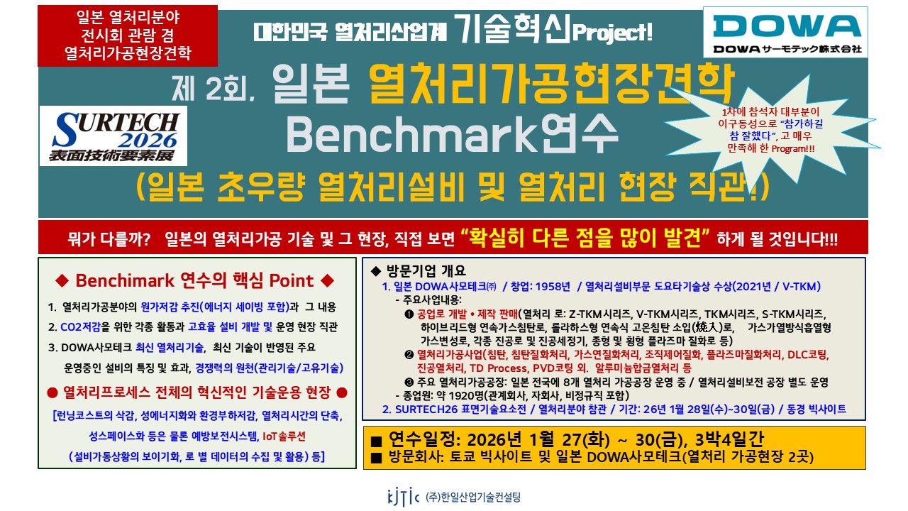 1. 연수단 명: 제 2회, SURTECH2026 참관 겸 일본열처리가공현장견학 Benchmark연수